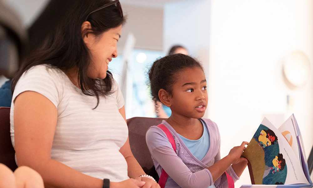 little girl with book